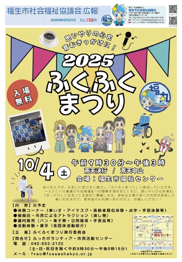 『福生市社会福祉協議会広報』159号(9月20日)を発行しました。