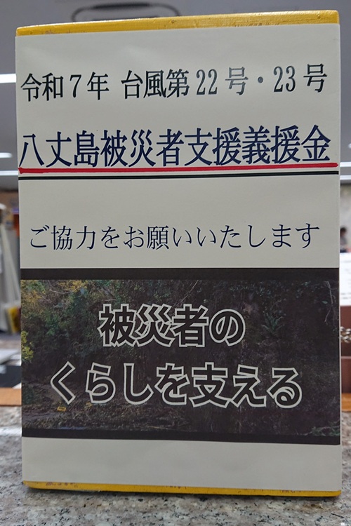 「令和7年 台風第22号・23号 八丈島被災者支援」の募金箱設置について